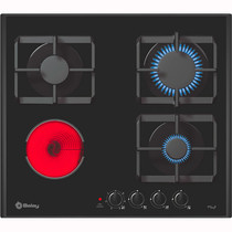 Placa Mista: três queimadores e uma zona de confecção vitrocerâmica de 15 cm.